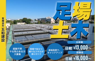 | 勤務時間 | 7:00~16:00(休憩あり) ※7時頃に置き場(東京都稲城市大丸2285-60)に集合し現場へ向かいます ※9時に業務開始となり15~16時頃に置き場に戻り解散となります ※上記はあくまで目安の時間となり多少前後する場合もございます |