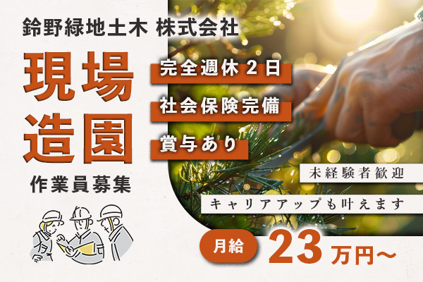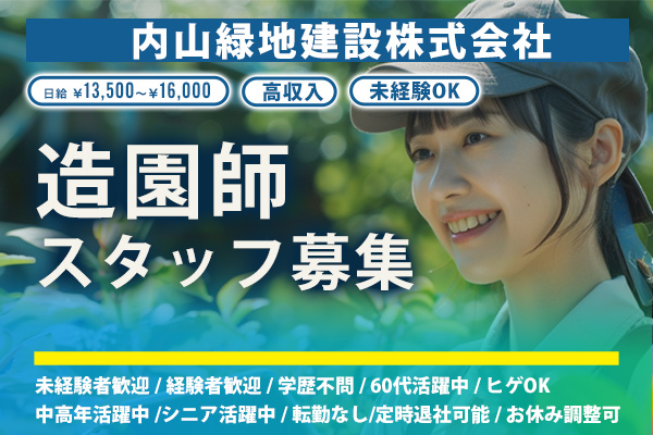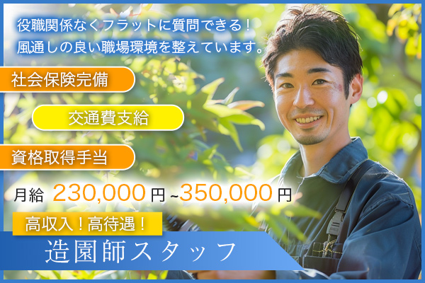 涼しくなるこの時期から、造園工として手に職をつけていきませんか?未経験OK【学歴・経験不問】意欲の高い方は「未経験」から成…