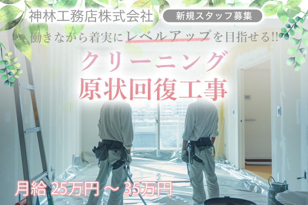 神林工務店株式会社は、神奈川県を中心に原状回復工事や内装・クリーニングを手がける少数精鋭の会社です。