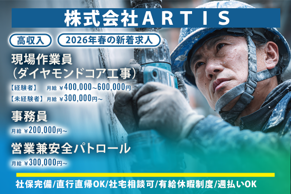 株式会社ARTISは、ダイヤモンドコア工事やデッキ開口工事、非破壊検査(X線・RCレーダ探査)など、建物の“見えない部分”を支える専門技術集団です。