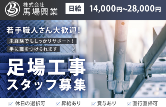 | 対象となる方 | 年齢不問 高卒以上 普通自動車免許 必須 1級または2級施工管理技士 あれば尚可 施工管理業務の経験 あれば尚可 建設現場での勤務経験 あれば尚可 |