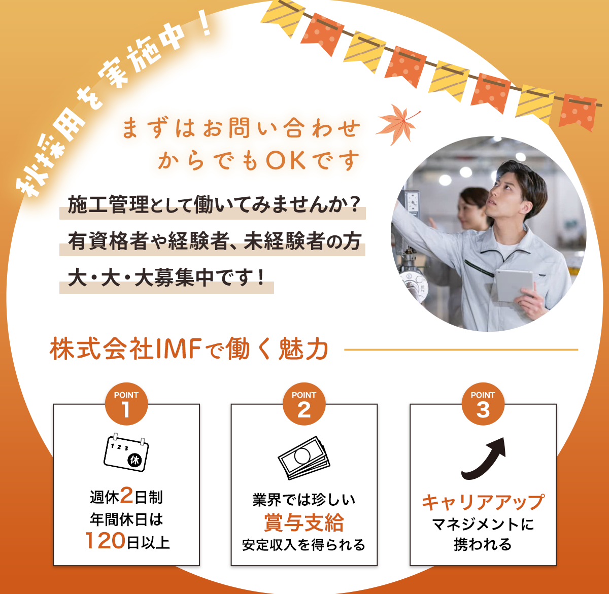 【秋採用スタート!未経験からでもOKな施工管理の求人です】
