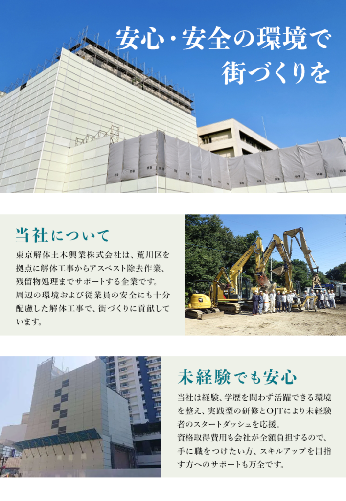 東京解体土木興業株式会社は、解体工事を中心に街づくりに携わる企業です。