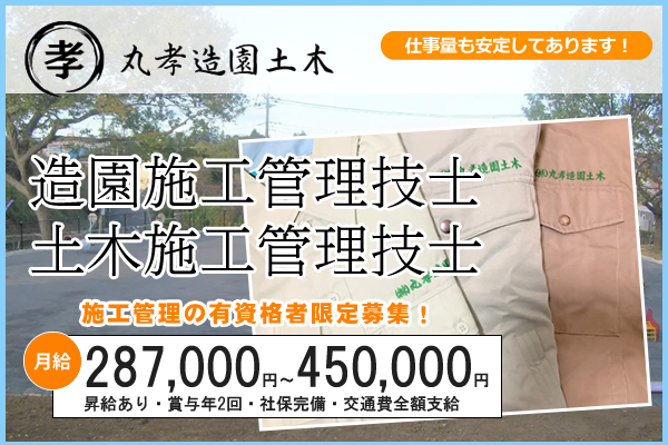 神奈川県横浜市の土木工事業・舗装工事業・造園工事業を行っている株式会社丸孝造園土木です!業績好調のため、新たに造園施…