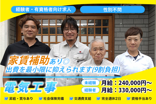 【北区×電気工事】今なら住宅手当の支給あり!(会社借り上げ住宅において家賃の9割を負担)当社は1989年設立以来、東京都・…