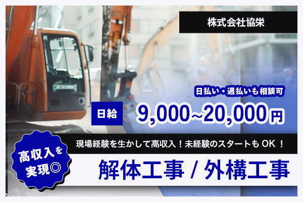 株式会社協栄は、東京都あきる野市を拠点に、住宅・店舗・ビルなどの解体工事および外構工事を手掛ける会社です。「安全・丁…